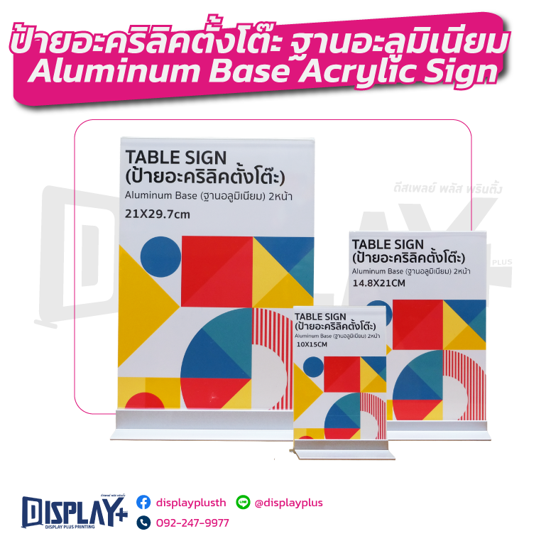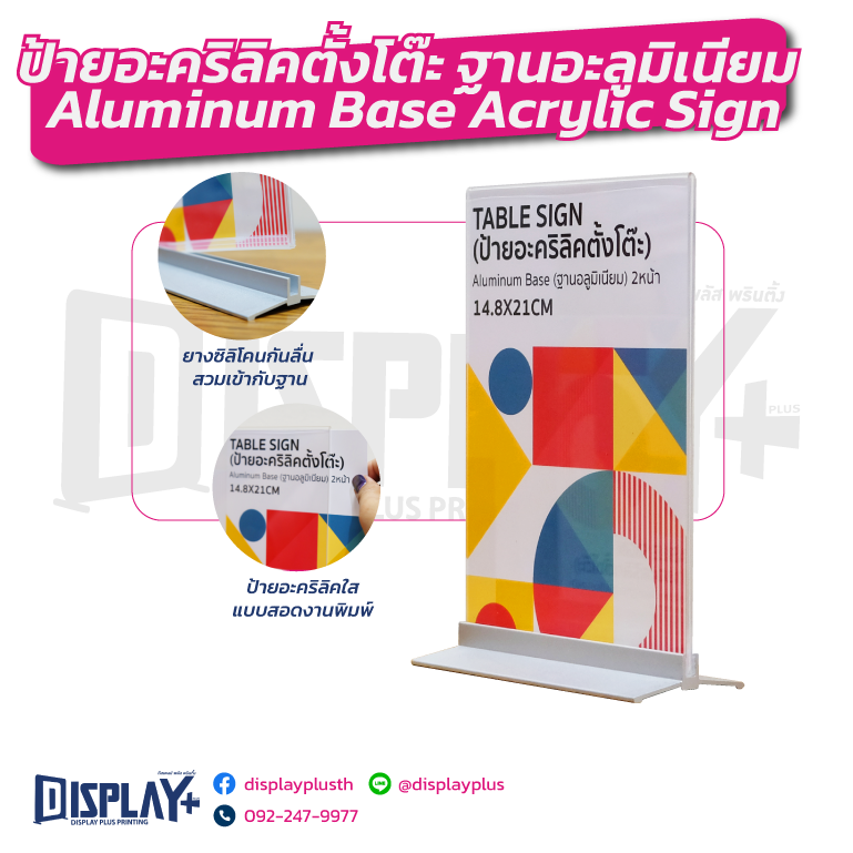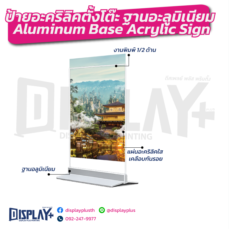 ป้ายอะคริลิคตั้งโต๊ะ รุ่นฐานอะลูมิเนียม Aluminum Base Acrylic Sign