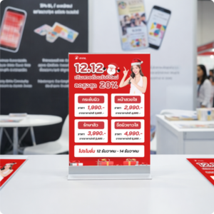 ป้ายอะคริลิคตั้งโต๊ะ รุ่นฐานอะลูมิเนียม