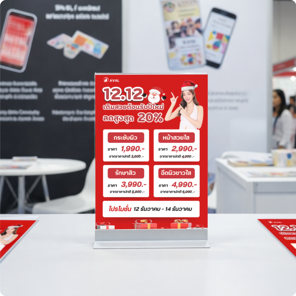 ป้ายอะคริลิคตั้งโต๊ะ รุ่นฐานอะลูมิเนียม Aluminum Base Acrylic Sign