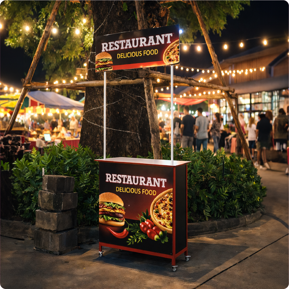 โครงสร้างน้ำหนักเบา เคลื่อนย้ายสะดวก มีล้อด้านล่าง รองรับการใช้งานทั้งในร่มและกลางแจ้ง พื้นที่หน้าโต๊ะกว้าง เหมาะสำหรับวางสินค้า อุปกรณ์ชงชิม หรือแจกตัวอย่างสินค้าได้อย่างลงตัว เหมาะกับธุรกิจอาหาร เครื่องดื่ม งานอีเวนต์ งานแสดงสินค้า (Booth Exhibition) และการตลาดหน้าร้าน