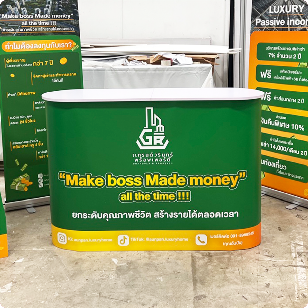 บูธสำเร็จรูป รูปแบบผ้า และงานพิมพ์ โดดเด่นไม่เหมือนใคร