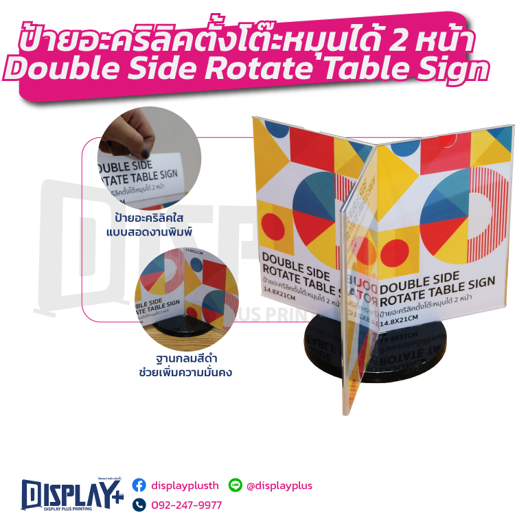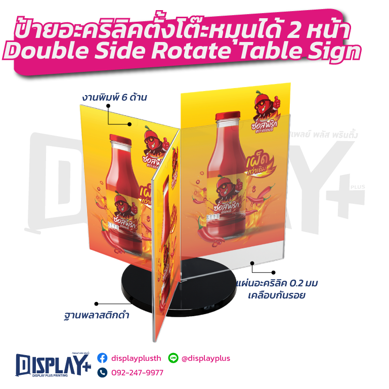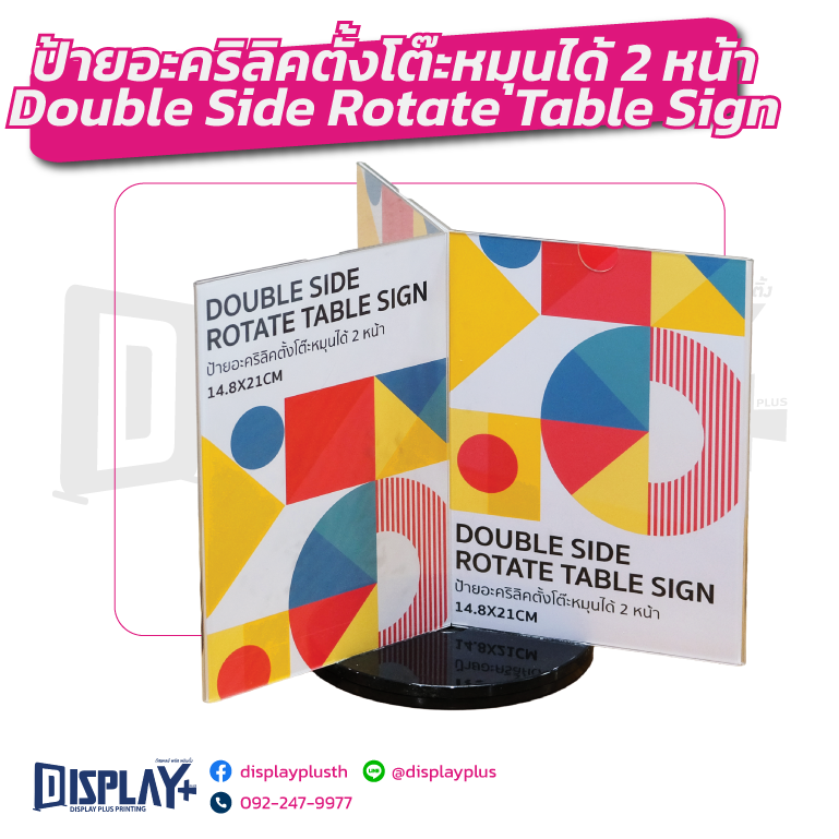 ป้ายอะคริลิคตั้งโต๊ะหมุนได้ 2 หน้า Double Side Rotate Table Sign