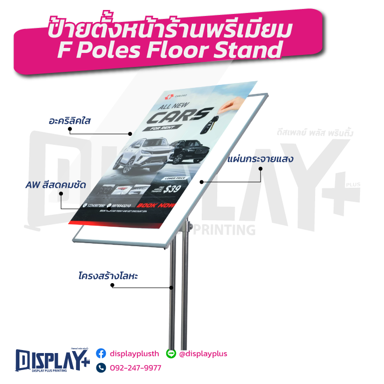 ป้ายตั้งหน้าร้านพรีเมียมออกไฟ เป็นสื่อประชาสัมพันธ์ที่ช่วยดึงดูดความสนใจลูกค้าได้อย่างมีประสิทธิภาพ เหมาะสำหรับโปรโมชันสินค้า บริการ รถเช่า หรือแคมเปญการตลาดต่างๆ ใช้งานได้ทั้งในโชว์รูม หน้าร้าน ห้างสรรพสินค้า และงานอีเวนต์ ป้ายตั้งพื้น,ป้าย Standee, ป้ายโฆษณาตั้งพื้น, ป้ายประชาสัมพันธ์, ป้ายออกบูธ, ป้ายหน้าร้าน, ป้ายโปรโมชั่น, ป้ายเหล็กตั้งพื้น, Standee โฆษณา
