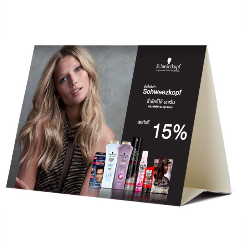 - Tent card มีขนาดไม่ใหญ่ ประหยัดพื้นที่ สามารถตั้งตามจุดที่ต้องการได้