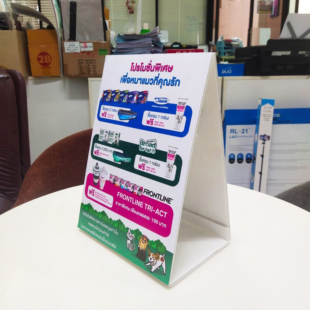 - ป้ายตั้งโต๊ะ ใช้สำหรับแจ้งเมนูอาหารและโปรโมชั่นต่าง ๆ ได้