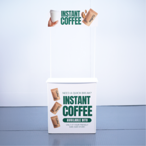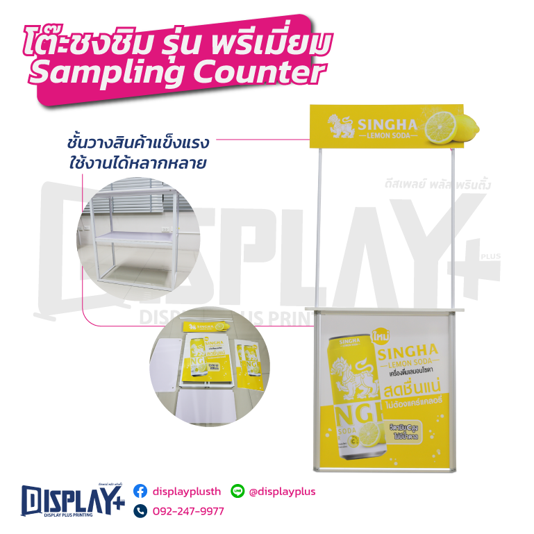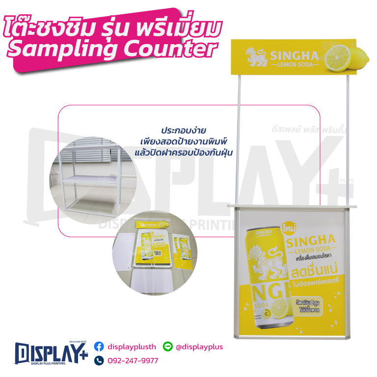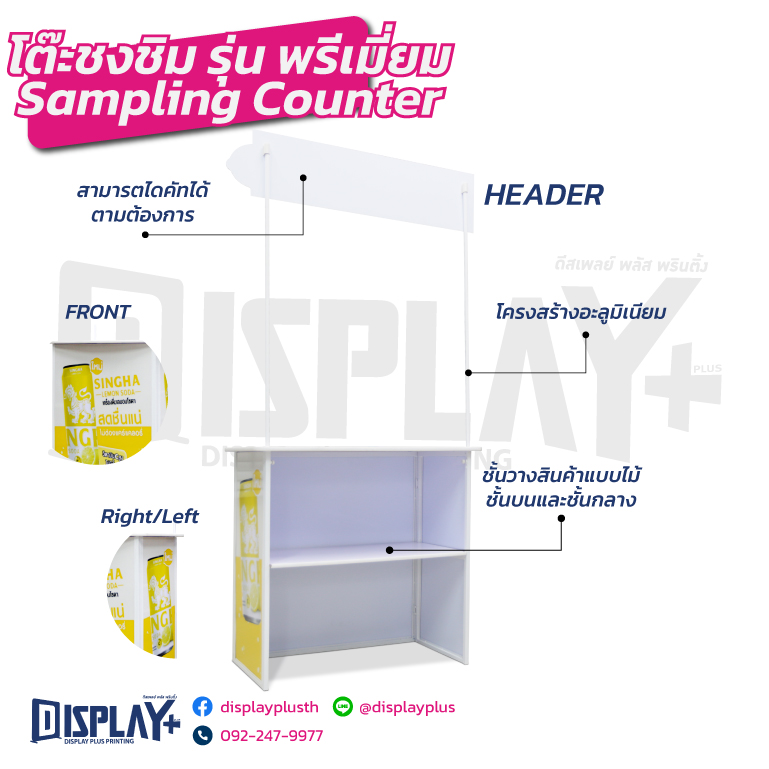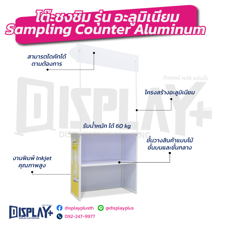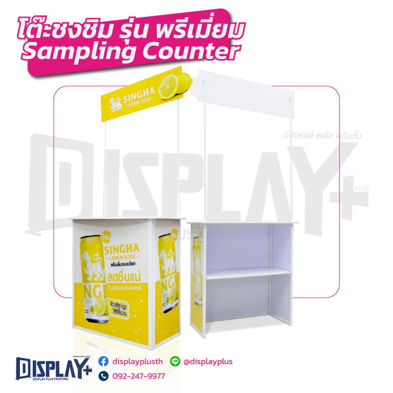 ออกแบบมาเพื่อการโปรโมตสินค้า ชงชิมกาแฟ อาหาร และเครื่องดื่ม ช่วยดึงดูดความสนใจลูกค้าในพื้นที่ขาย เพิ่มโอกาสทดลองสินค้า และกระตุ้นการตัดสินใจซื้อ เหมาะสำหรับงานอีเวนต์ โรดโชว์ และหน้าร้านทุกประเภท โต๊ะชงชิม, โต๊ะ Sampling, โต๊ะออกบูธ, โต๊ะออกงาน, โต๊ะชงกาแฟ, โต๊ะชิมสินค้า, โต๊ะโปรโมทสินค้า, โต๊ะพับออกบูธ, โต๊ะบูธพิมพ์โลโก้
