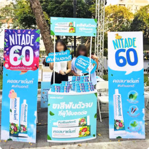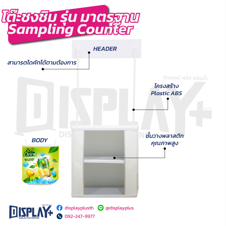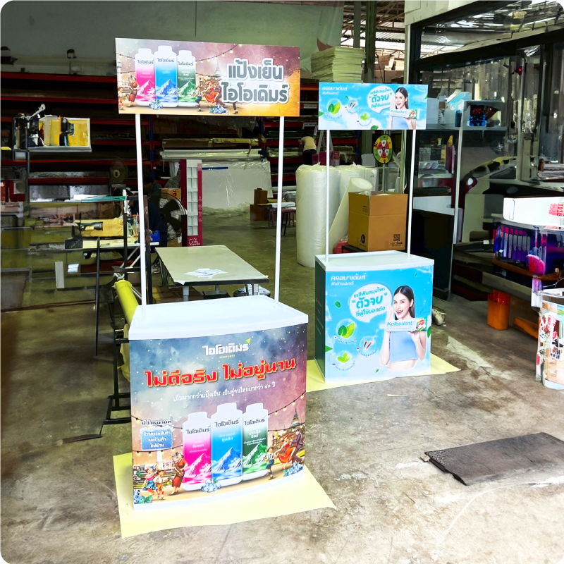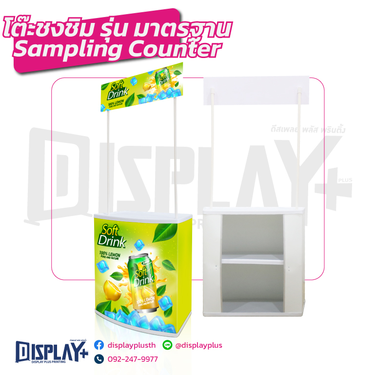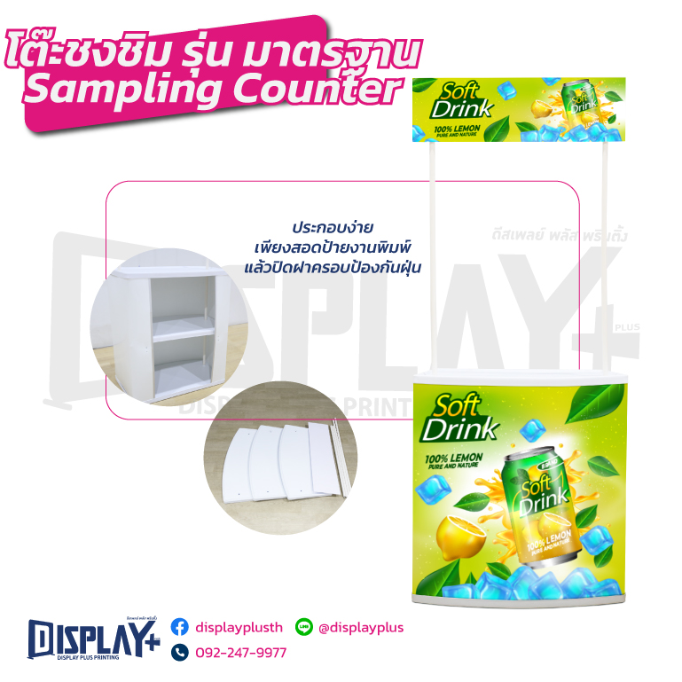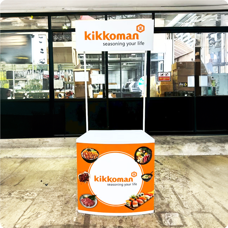 เหมาะสำหรับกิจกรรมชงชิม แจกตัวอย่างสินค้า แนะนำโปรโมชัน และสร้างประสบการณ์ร่วมกับลูกค้าดีไซน์สวย พิมพ์กราฟิกแบรนด์รอบตัว ช่วยเพิ่มการมองเห็น (Brand Visibility) และภาพลักษณ์ที่เป็นมืออาชีพในงานแฟร์ งานอีเวนต์ และงานแสดงสินค้าทุกประเภท โต๊ะชงชิม, Sampling Booth, โต๊ะออกบูธ, โต๊ะชิมสินค้า, บูธชงชิม, โต๊ะ Sampling, โต๊ะออกงานอีเวนต์, โต๊ะออกบูธงานแฟร์, โต๊ะโปรโมชันสินค้า