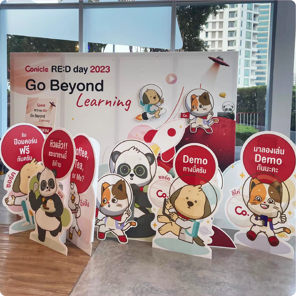 *สแตนดี้มาตรฐาน ผลิตด้วย PP Board สีขาวหนาพิเศษ 4 มม. **งานพิมพ์พร้อมไดคัท +เพิ่มตัวละ 150 บาท