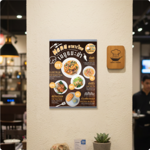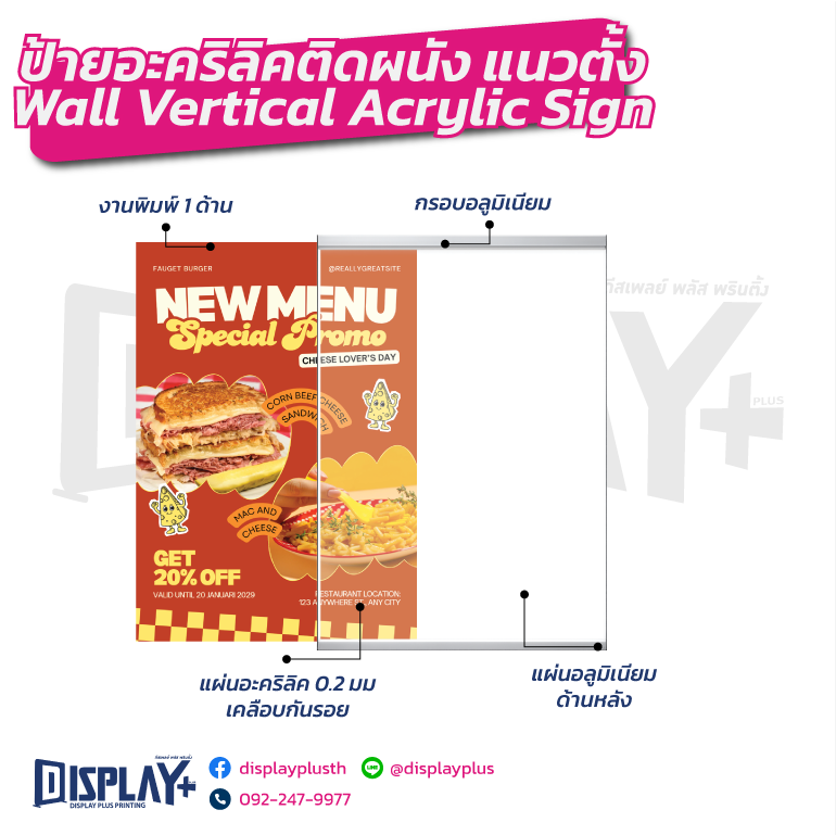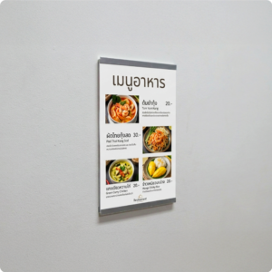 ป้ายอะคริลิคติดผนัง แนวตั้ง