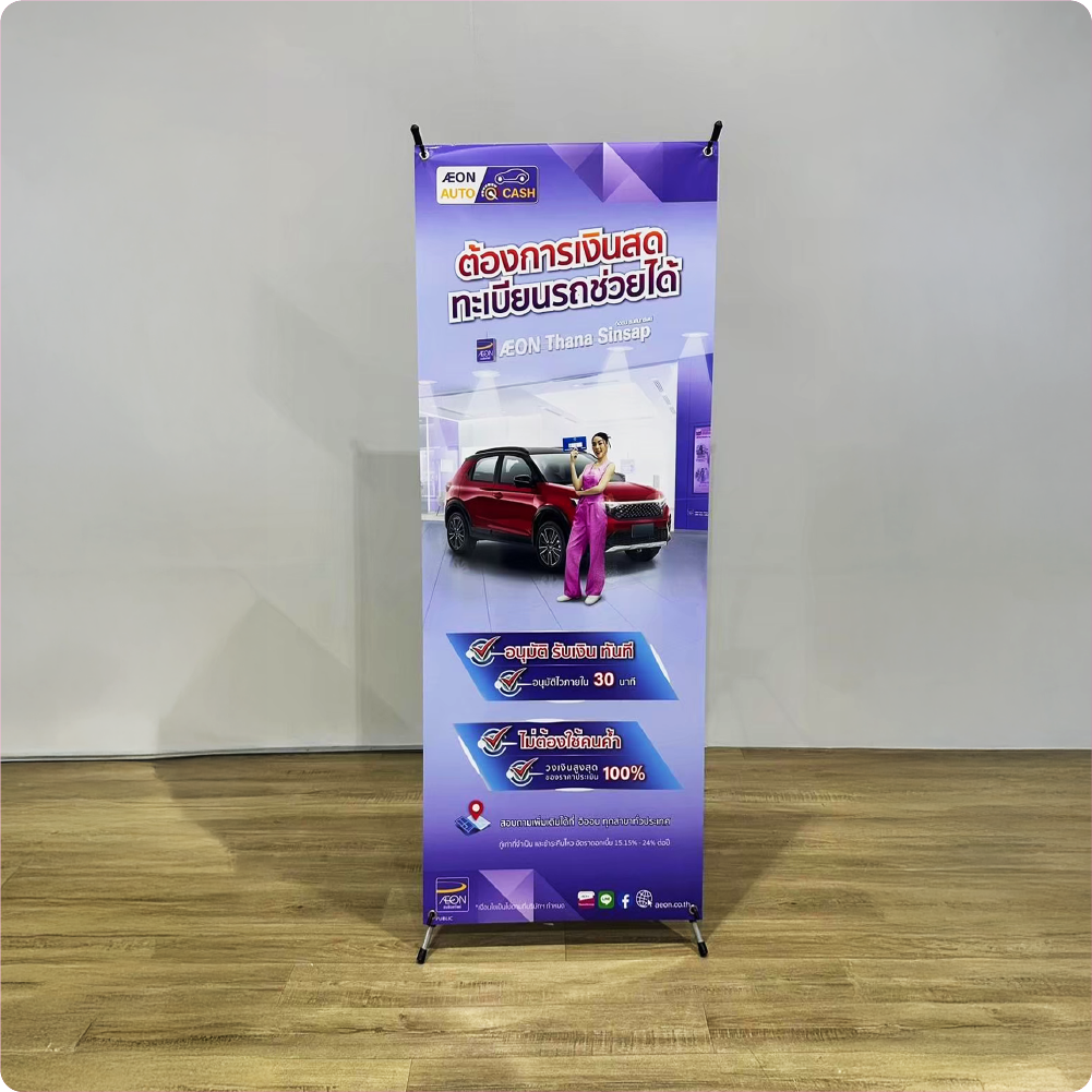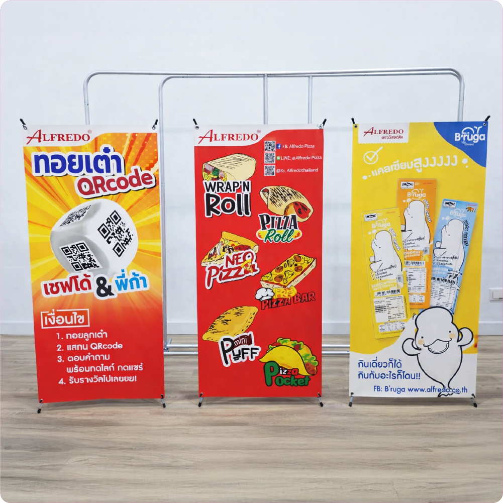 ป้ายมินิเอกซ์สแตน ดีไซน์สวย คมชัด น้ำหนักเบาเหมาะ สำหรับใช้โปรโมชัน เมนูสินค้า หรือแคมเปญพิเศษบนเคาน์เตอร์ร้านค้า คาเฟ่ ร้านเบเกอรี่ ร้านเครื่องดื่ม และบูธออกงานต่าง ๆ ช่วยดึงสายตาลูกค้าซื้อได้ทันทีตั้งแต่จุดชำระเงิน ป้ายผ้าโฆษณาตั้งโต๊ะ, ป้ายตั้งโต๊ะ, ป้ายผ้าโฆษณา, Tabletop Fabric Banner, ป้ายโปรโมชันหน้าร้าน, ป้ายตั้งโต๊ะร้านกาแฟ, ป้ายตั้งโต๊ะออกบูธ, ป้ายเมนูตั้งโต๊ะตัวโครงผลิตจากวัสดุแข็งแรง ทนทาน สามารถใช้งานซ้ำได้หลายครั้ง มาพร้อมขาตั้งมั่นคง ช่วยให้ป้ายตั้งตรงสวยงาม ภาพกราฟิกคมชัด สะดุดตา ช่วยเพิ่มความน่าสนใจให้กับแบรนด์หรือสินค้าได้อย่างมีประสิทธิภาพ ป้าย X-Stand ราคาถูก พร้อมส่ง ป้าย X-Stand โปรโมชัน ซื้อ X-Stand ออนไลน์ X-Stand ส่งฟรี ป้ายโฆษณา ราคาประหยัด